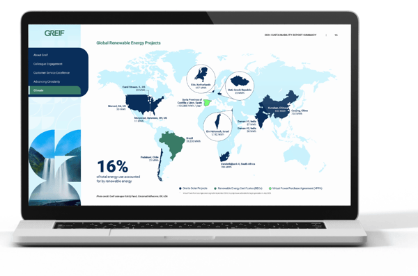 As part of the reporting process, we’re often referencing technical terminology, sprawling data sets, and multi-layered concepts. Concepts like the value chain, carbon accounting methodologies, Scope 3 emissions, and circular economy principles can be dense for readers without a technical sustainability background. Furthermore, when stakeholders encounter page after page of text-heavy explanations, even the most important insights can get lost.